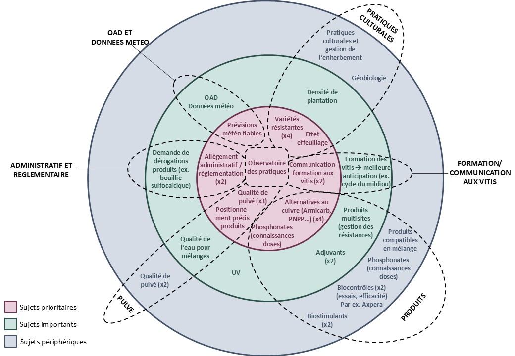 Focus sur le transfert de connaissances aux viticulteurs : consensus sur la nécessité de mieux communiquer pour faciliter la transmission d’informations et accentuer le changement de pratiques autour de la protection phytosanitaire du vignoble.